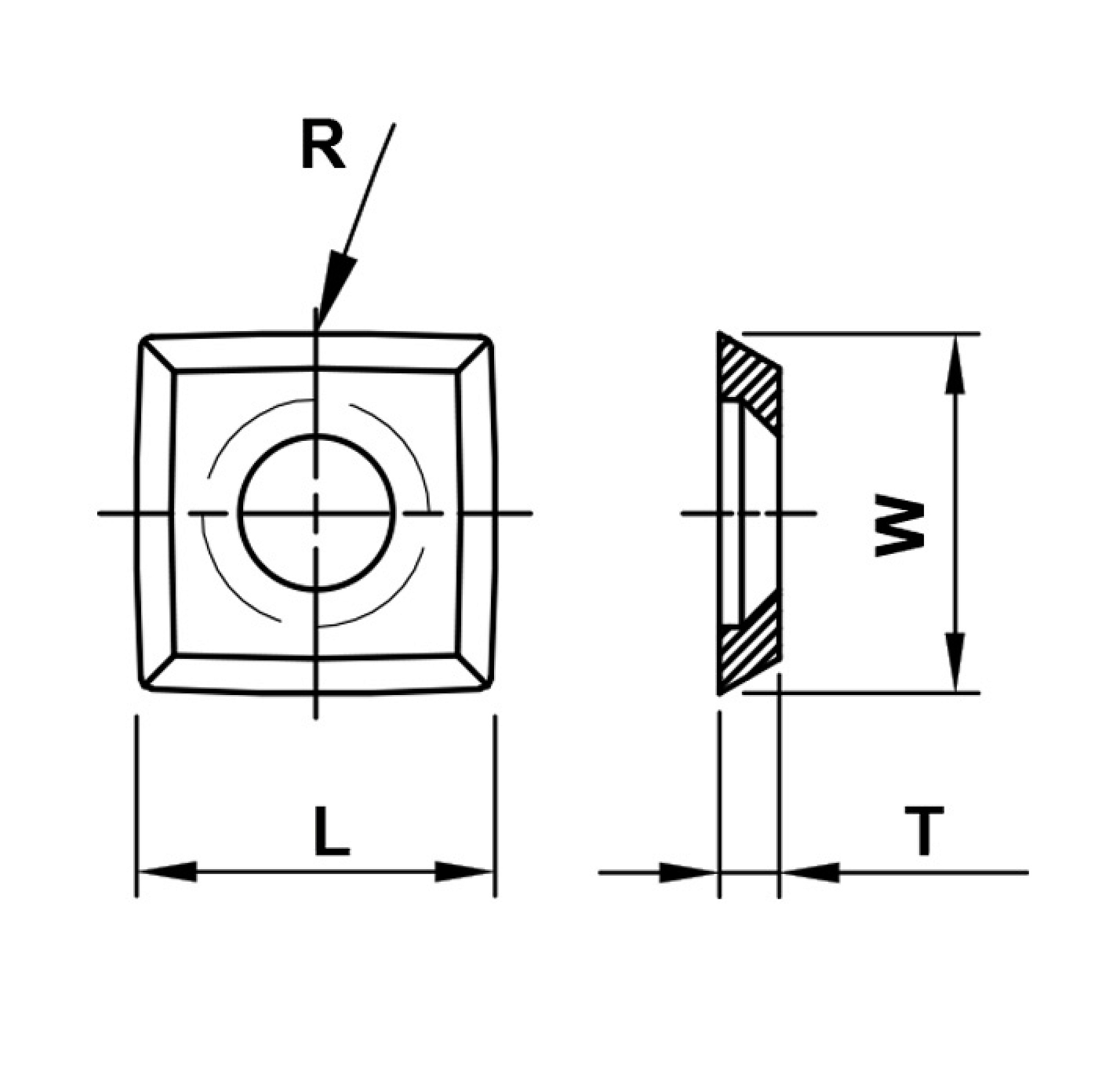 HW výměnné břitové destičky VBD - 4 řezné hrany s rádiusem R50 (obvod), univerzální kvalita. Použití: ve spirálových frézách 122517539 a 122518658 na měkké a tvrdé dřevo, lepené dřevo, Multiplex atd.
